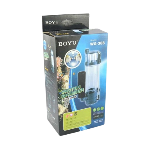 The Boyu Protein Skimmer WG-308 is a nano-scale internal protein skimmer designed to remove dissolved organic compounds and particulates from saltwater and reef aquaria. Compact yet effective, WG-308 improves water quality by creating dense micro-bubbles that capture organics before they break down, thereby reducing load on biological filtration and helping maintain stable water chemistry. Because it is small and quiet, the WG-308 suits nano tanks, reef setups, or sumpless systems where space is limited.
